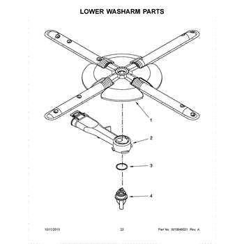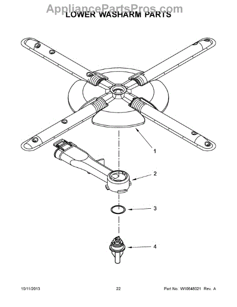 The Lower Spray Arm is an OEM part for Whirlpool dishwashers. This component is located at the bottom of the dishwasher and is responsible for distributing water to clean the dishes during the wash cycle.