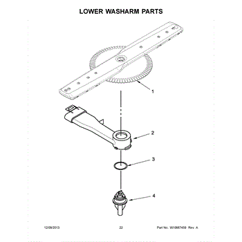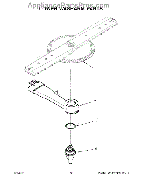Replaces a cracked, broken, or damaged lower spray arm in your dishwasher. Installs on the bottom rack level to distribute water during wash cycles.