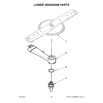 The Lower Spray Arm is an OEM part for Whirlpool dishwashers. This part distributes water throughout the dishwasher during the wash cycle, ensuring that dishes are thoroughly cleaned. It rotates to spray water at high pressure, reaching all areas of the lower rack.