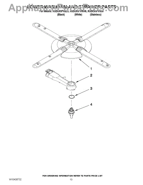 Parts for Kitchenaid KUDC03FVWH5: 11 - Lower Washarm And Strainer Parts