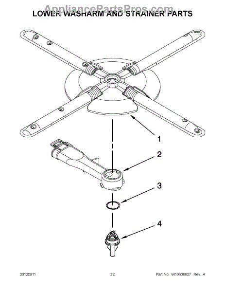 Parts for Kitchenaid KUDC10FBSS0: 11 - Lower Washarm And Strainer Parts