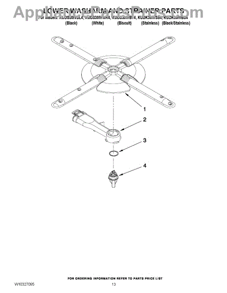 Parts for Kitchenaid KUDK30IVBS4: 11 - Lower Washarm And Strainer Parts