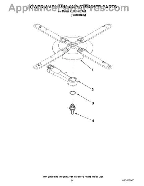 Parts for Kitchenaid KUDS30FXPA3: 11 - Lower Washarm And Strainer Parts
