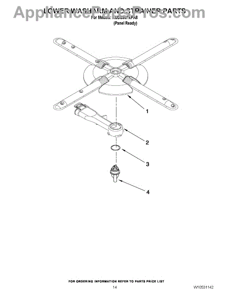 Parts for Kitchenaid KUDS30FXPA8: 11 - Lower Washarm And Strainer Parts