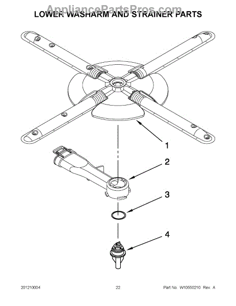 Parts for Kitchenaid KUDS30IBWH1: 11 - Lower Washarm And Strainer Parts