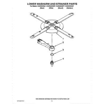 Parts for Kitchenaid KUDS30IXBT7: 11 - Lower Washarm And Strainer Parts