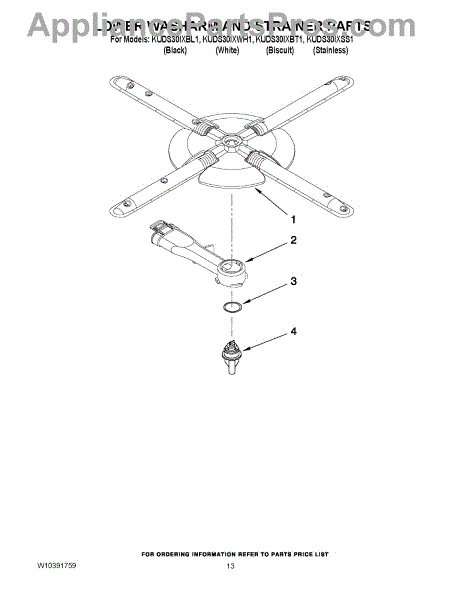 Parts for Kitchenaid KUDS30IXSS1: 11 - Lower Washarm And Strainer Parts
