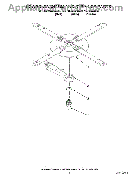 Parts for Kitchenaid KUDS30SXSS0: 11 - Lower Washarm And Strainer Parts