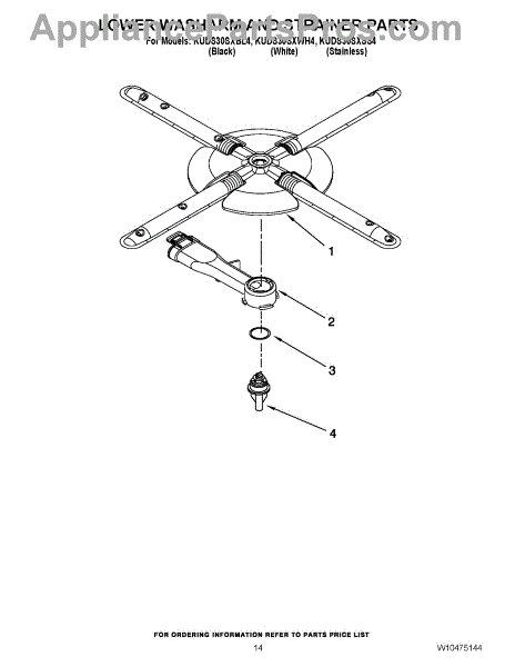Parts for Kitchenaid KUDS30SXWH4: 11 - Lower Washarm And Strainer Parts