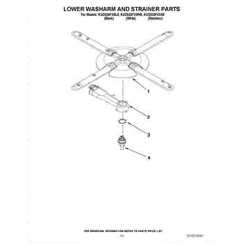 Parts for Kitchenaid KUDS35FXWH8: 11 - Lower Washarm And Strainer Parts