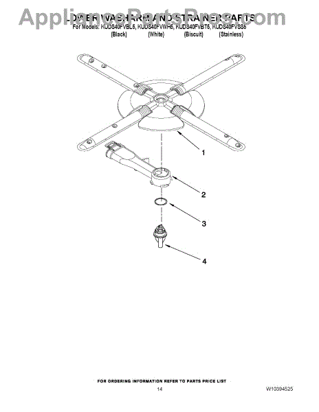 Parts for Kitchenaid KUDS40FVWH5: 11 - Lower Washarm And Strainer Parts