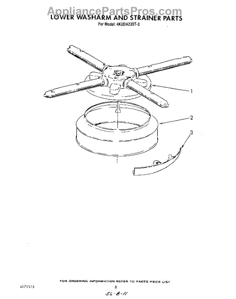 Parts for Whirlpool 4KUDA220T3: 06 - Lower Washarm And Strainer Parts