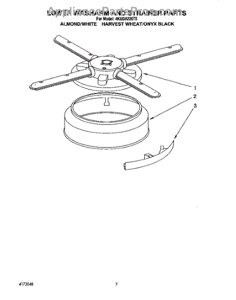 Parts for Whirlpool 4KUDA220T5: 05 - Lower Washarm And Strainer Parts