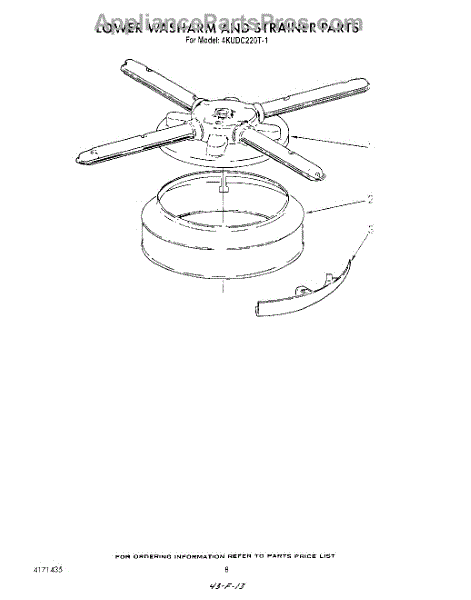 Parts for Whirlpool 4KUDC220T1: 06 - Lower Washarm And Strainer Parts