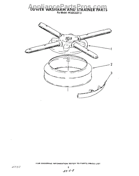 Parts for Whirlpool 4KUDC220T3: 06 - Lower Washarm And Strainer Parts