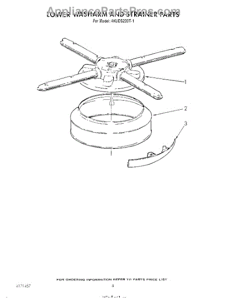 Parts for Whirlpool 4KUDS220T1: 06 - Lower Washarm And Strainer Parts