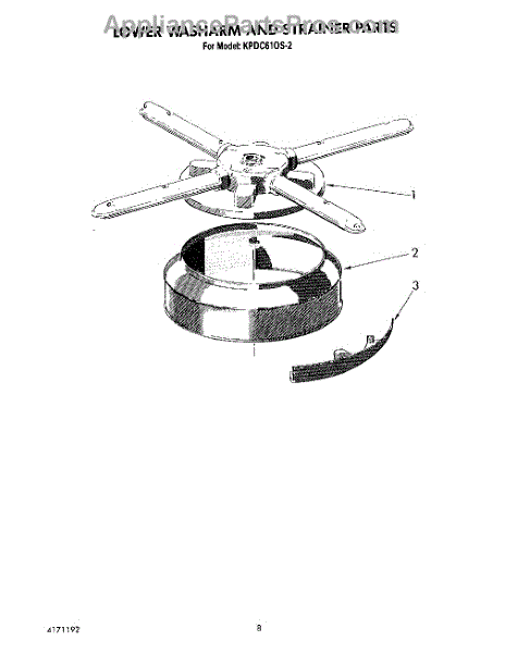 Parts for Kitchenaid KPDC610S2: 05 - Lower Washarm And Strainer Parts