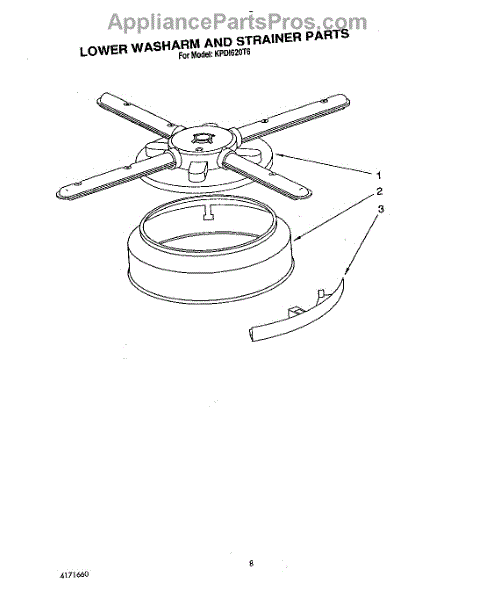 Parts for Kitchenaid KPDI620T6: 06 - Lower Washarm And Strainer Parts