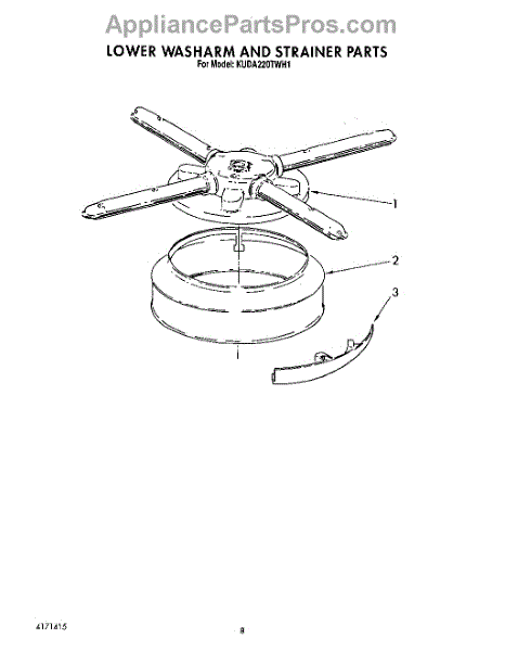 Parts for Kitchenaid KUDA220TWH1: 06 - Lower Washarm And Strainer Parts
