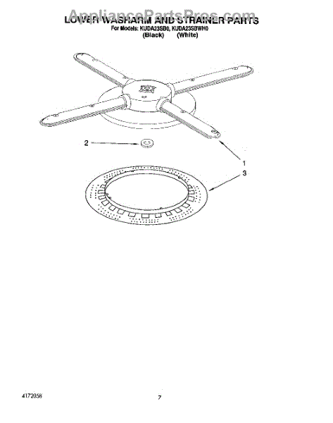 Parts for Kitchenaid KUDA23SBWH0: 05 - Lower Washarm And Strainer Parts