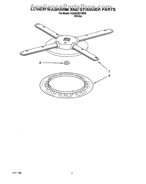 Parts for Kitchenaid KUDA23ZYWH0: 05 - Lower Washarm And Strainer Parts