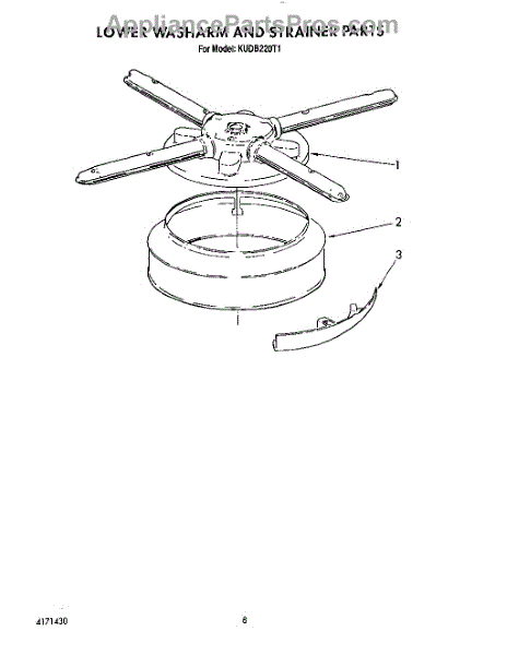 Parts for Kitchenaid KUDB220T1: 06 - Lower Washarm And Strainer Parts