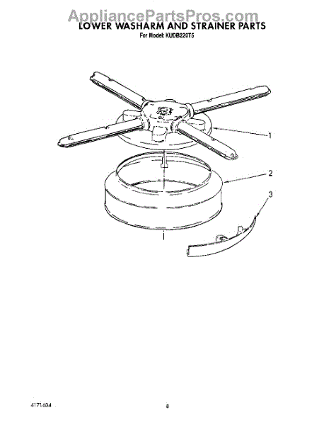 Parts for Kitchenaid KUDB220T5: 06 - Lower Washarm And Strainer Parts