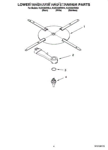 Parts for Kitchenaid KUDC02IRBL4: 04 - Lower Washarm And Strainer Parts