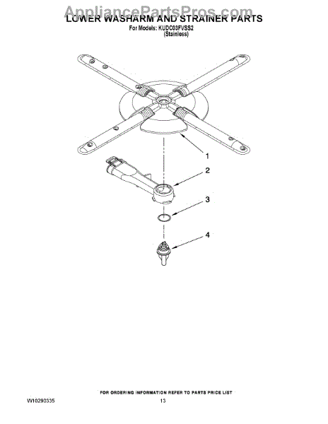 Parts for Kitchenaid KUDC03FVSS2: 11 - Lower Washarm And Strainer Parts