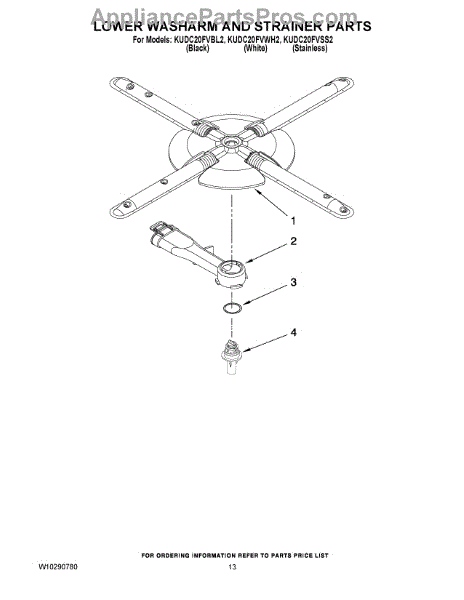 Parts for Kitchenaid KUDC20FVWH2: 11 - Lower Washarm And Strainer Parts