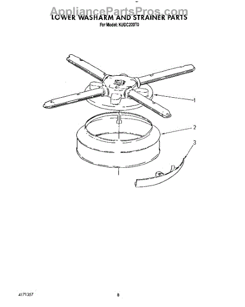 Parts for Kitchenaid KUDC220T0: 06 - Lower Washarm And Strainer Parts