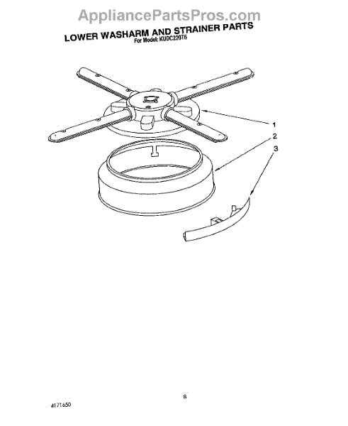 Parts for Kitchenaid KUDC220T6: 06 - Lower Washarm And Strainer Parts