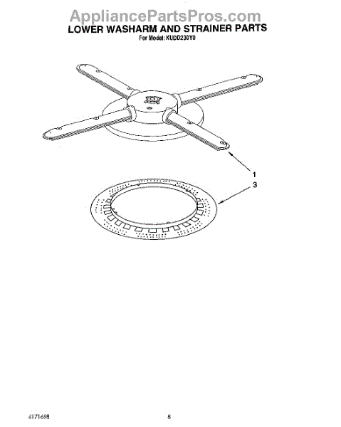 Parts for Kitchenaid KUDD230Y0: 06 - Lower Washarm And Strainer Parts