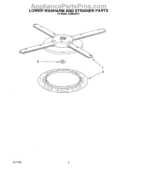 Parts for Kitchenaid KUDD23HY1: 05 - Lower Washarm And Strainer Parts