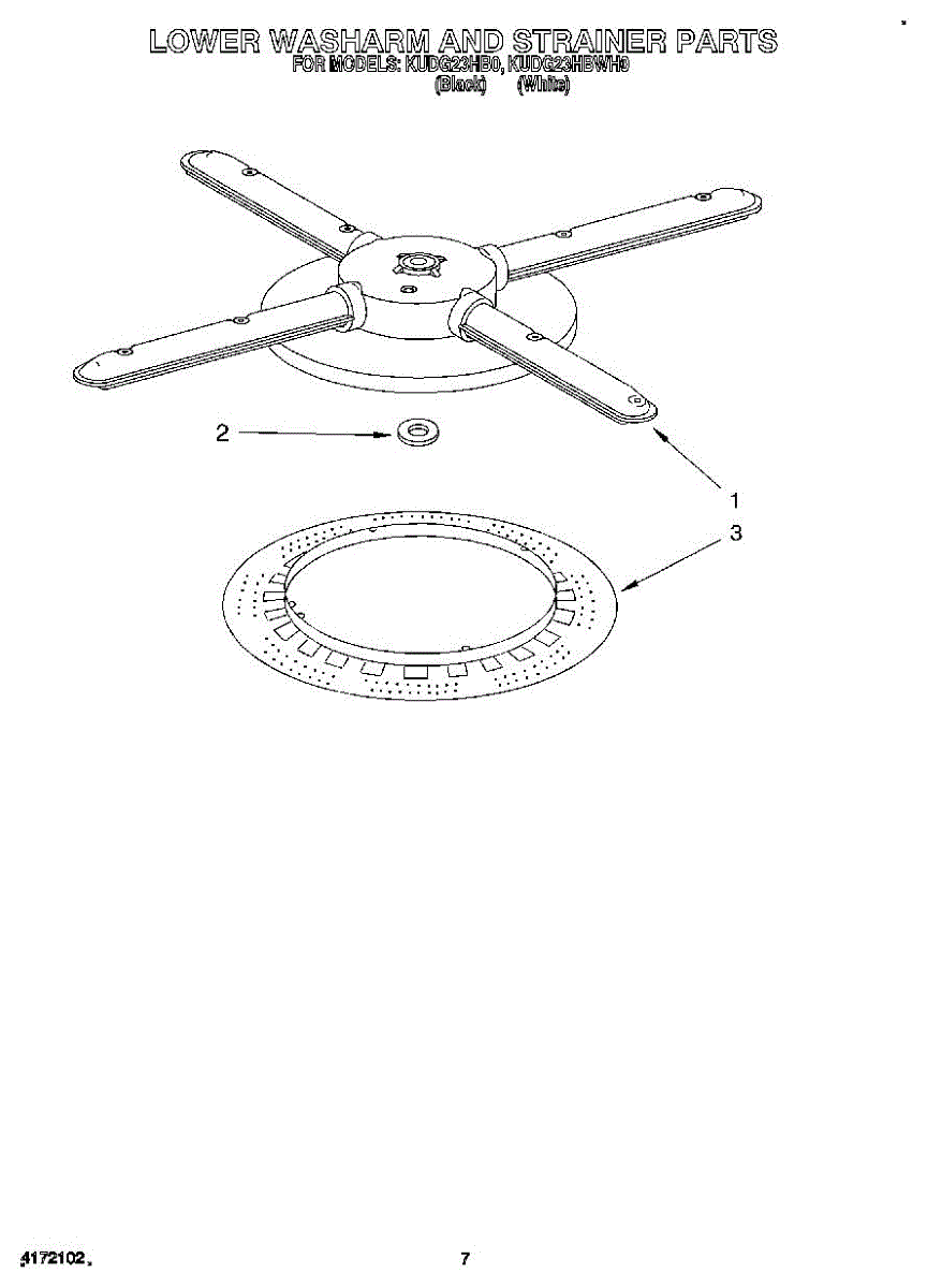 Parts for Kitchenaid KUDG23HBWH0: 05 - Lower Washarm And Strainer Parts
