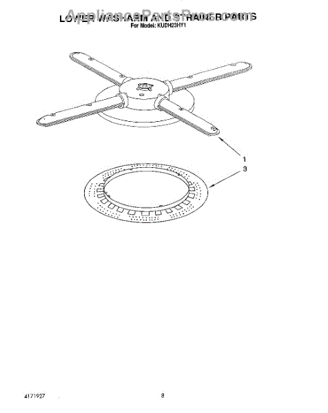 Parts for Kitchenaid KUDH23HY1: 05 - Lower Washarm And Strainer Parts