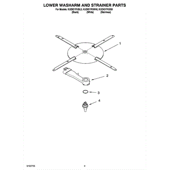 Parts for Kitchenaid KUDI01FKWH0: 04 - Lower Washarm And Strainer Parts