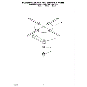 Parts for Kitchenaid KUDI01TJBL0: 04 - Lower Washarm And Strainer Parts