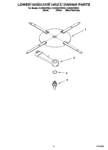 Parts for Kitchenaid KUDI02CRBL3: 04 - Lower Washarm And Strainer Parts