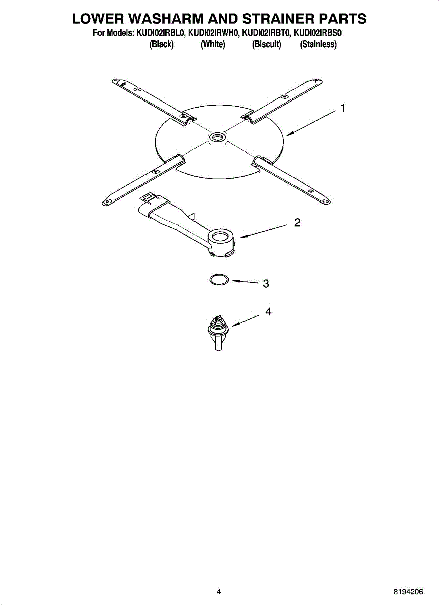 Parts for Kitchenaid KUDI02IRBS0: 04 - Lower Washarm And Strainer Parts