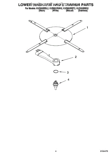 Parts for Kitchenaid KUDI02IRWH2: 04 - Lower Washarm And Strainer Parts
