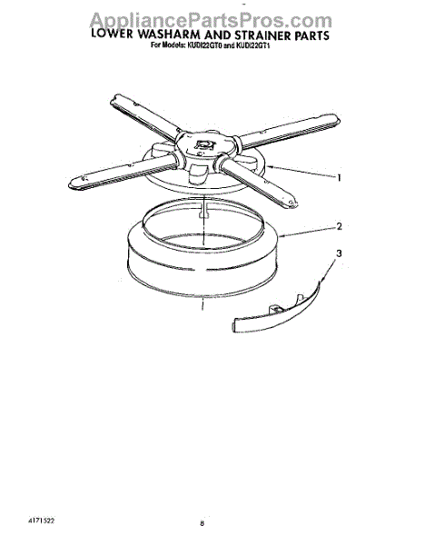 Parts for Kitchenaid KUDI22GT1: 06 - Lower Washarm And Strainer Parts