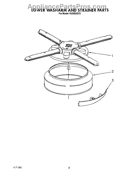 Parts for Kitchenaid KUDI22GT2: 06 - Lower Washarm And Strainer Parts