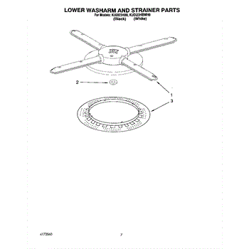 Parts for Kitchenaid KUDI23HBWH0: 05 - Lower Washarm And Strainer Parts