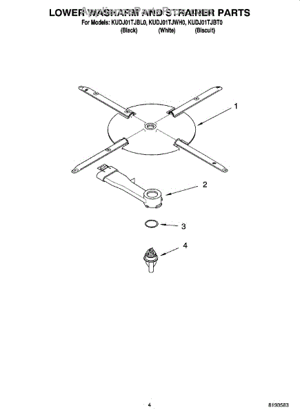 Parts for Kitchenaid KUDJ01TJBT0: 04 - Lower Washarm And Strainer Parts