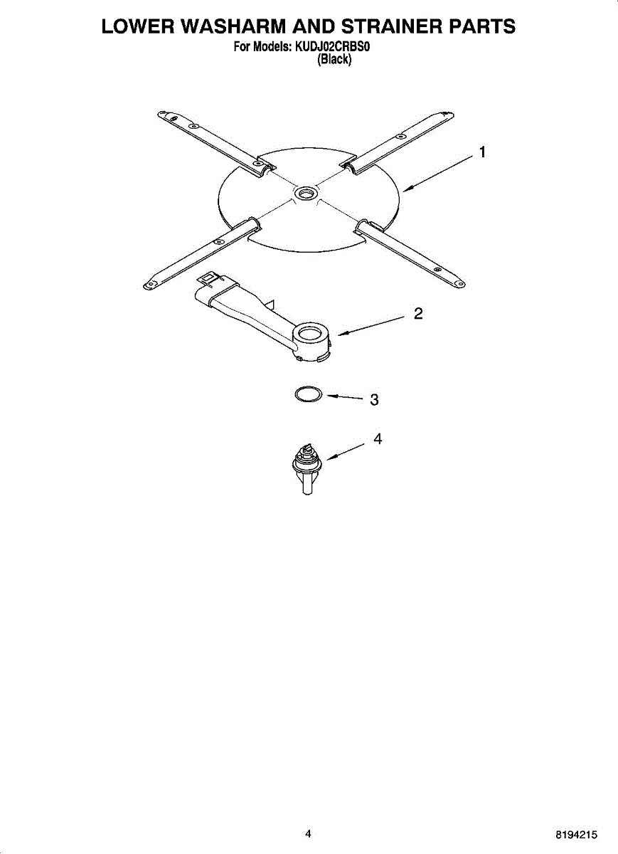 Parts for Kitchenaid KUDJ02CRBS0: 04 - Lower Washarm And Strainer Parts