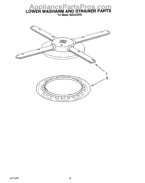 Parts for Kitchenaid KUDJ230Y0: 06 - Lower Washarm And Strainer Parts