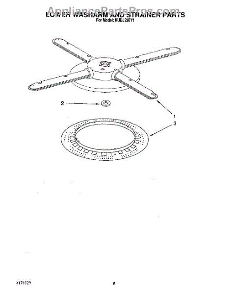 Parts for Kitchenaid KUDJ230Y1: 05 - Lower Washarm And Strainer Parts