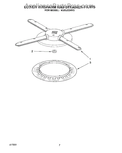 Parts for Kitchenaid KUDJ23HY3: 05 - Lower Washarm And Strainer Parts