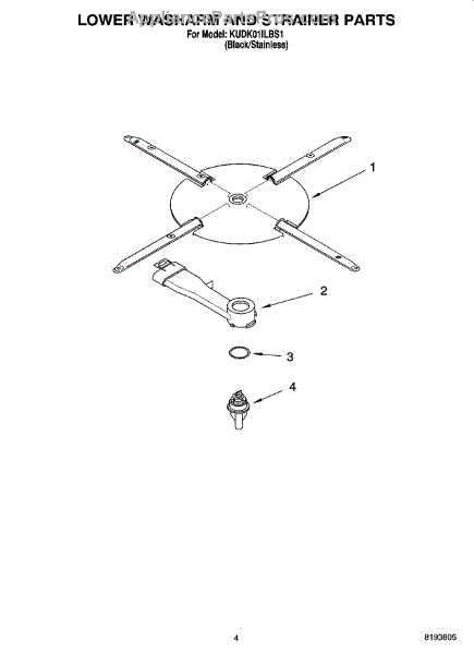 The Lower Spray Arm is an OEM part for Whirlpool dishwashers. This component is located at the bottom of the dishwasher and is responsible for distributing water to clean the dishes during the wash cycle.